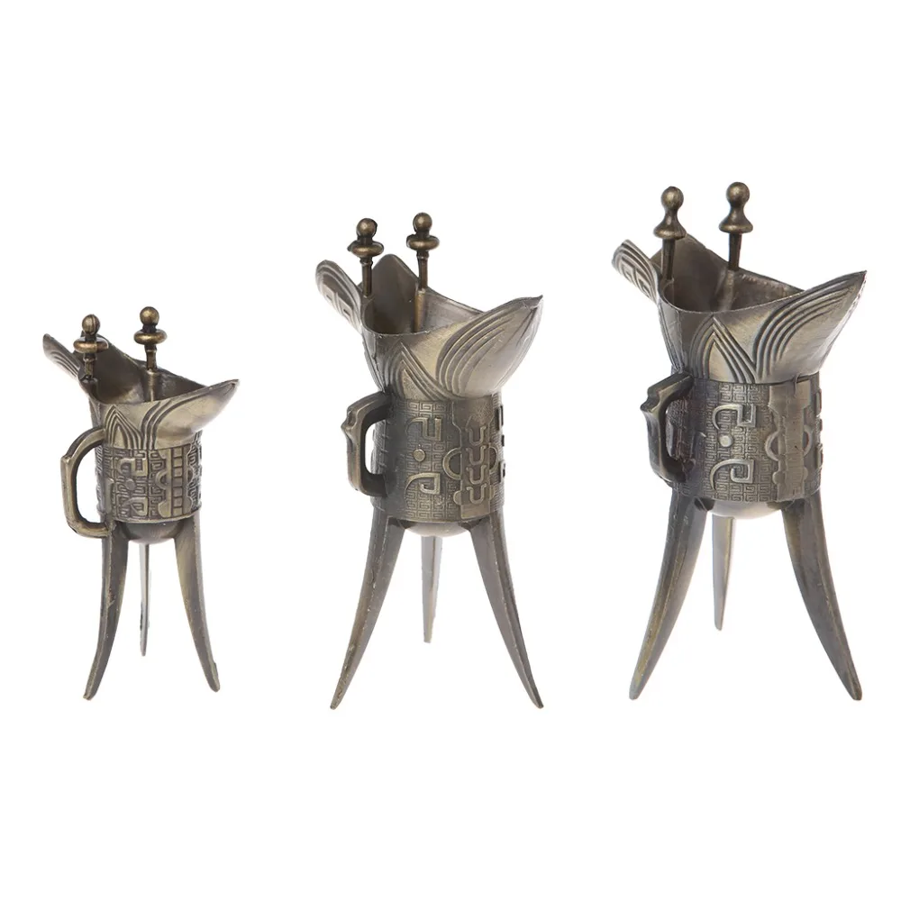 .Images for 1Pc Chinese Antique Archaistic Embossment three-legged Cup Wine liquor Cup Home Decor Collective Craft 3 Size